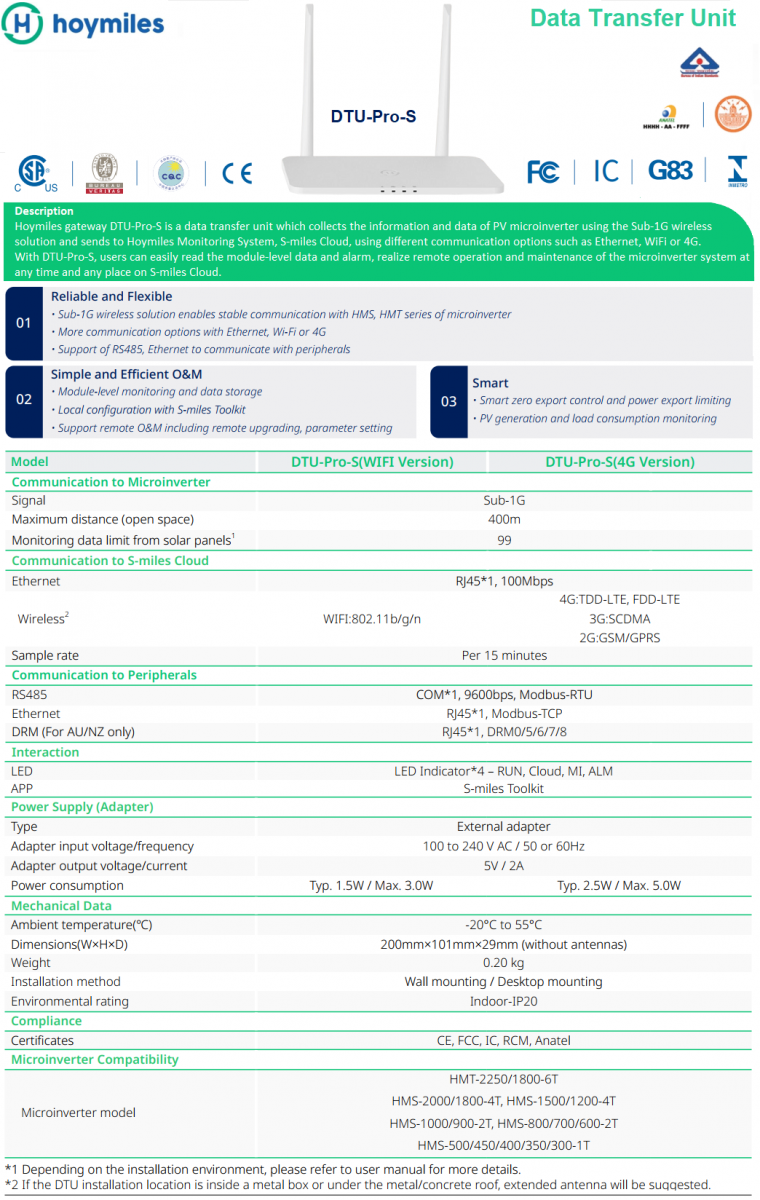 Bộ Ghi Nhận và Truyền Dữ Liệu Hoymiles DTU-Pro-S