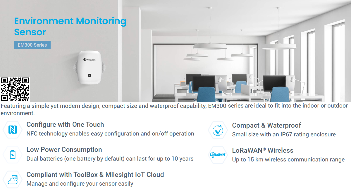 EM300-TH Temperature & Humidity Sensor là thiết bị cảm biến môi trường xung quanh chuẩn công nghiệp được thiết kế và sản xuất bởi Milesight. Cảm biến EM300-TH cho phép thu thập dữ liệu Nhiệt độ và Độ ẩm một cách nhanh nhất - chính xác nhất. Phạm vi sử dụng của cảm biến rộng 2~15km trong nhà lẫn ngoài trời. Thiết bị được dùng nhiều trong các văn phòng, tòa nhà, nhà xưởng công nghiệp, trang trại chăn nuôi, nhà kính, nông nghiệp thông minh,...