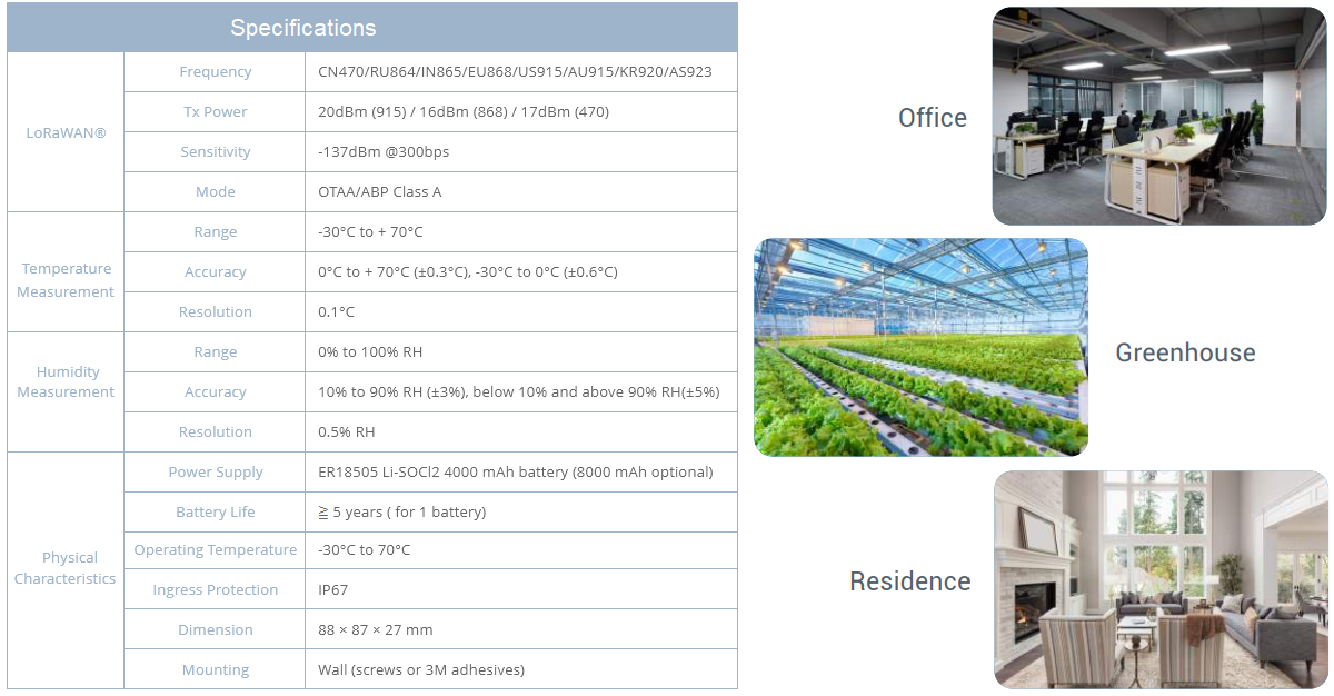 Thông số kỹ thuật của Cảm biến giám sát Nhiệt độ và Độ ẩm EM300-TH: