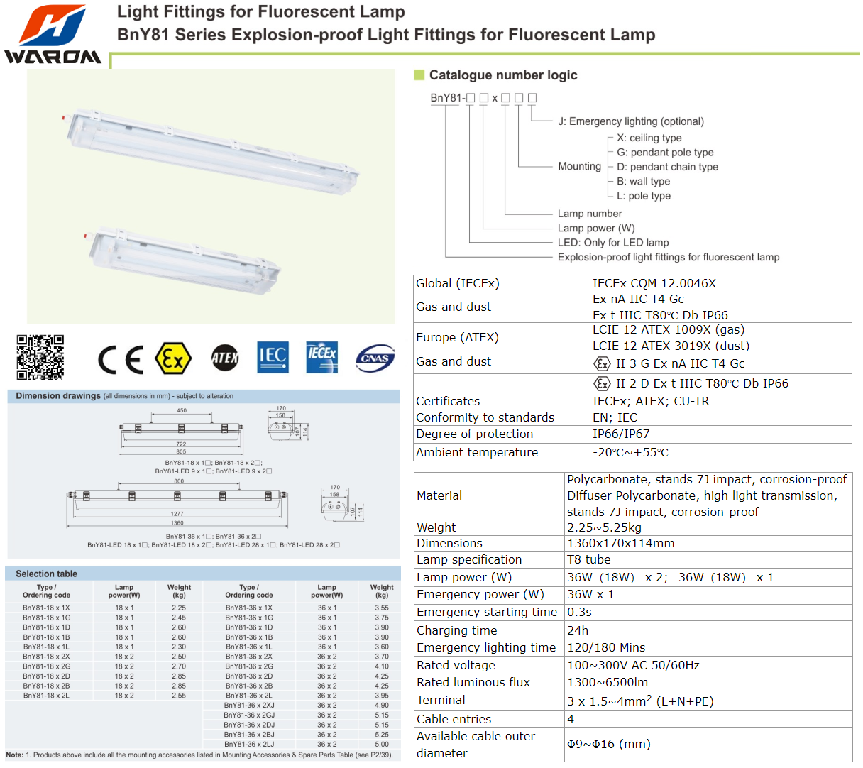 BnY81 Series Explosion-proof Light Fittings for Fluorescent Lamp