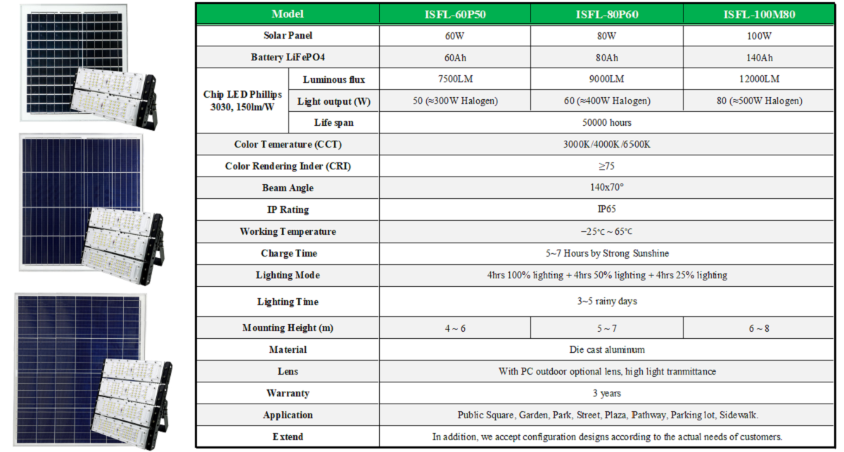 Các Model Đèn Pha LED Công Nghiệp Năng Lượng Mặt Trời Sunlight ISFL-Series thường gặp hiện nay là: ISFL-60P50, ISFL-80P60, ISFL-100M80,...