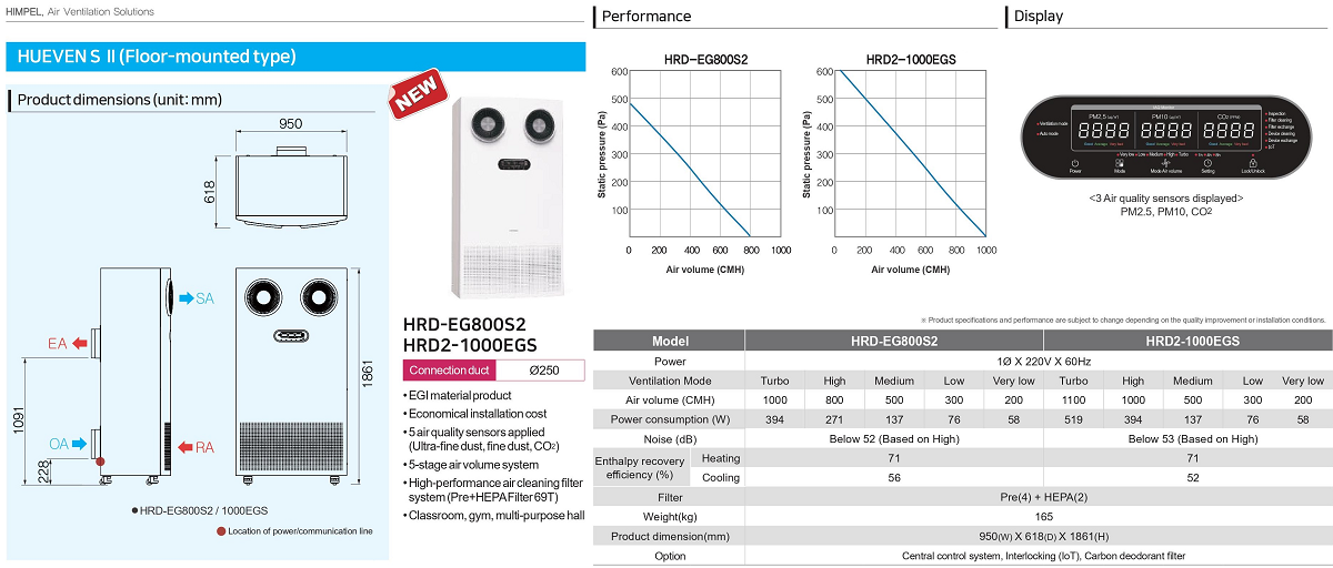 Máy cấp gió tươi thu hồi nhiệt Himpel HRD2-1000EGS